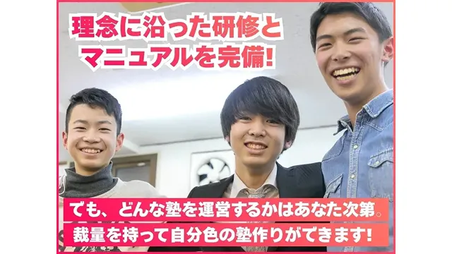 ◎生徒が自立して学習できる1:1~1:4の指導スタイルです。 ◎経験のない先生にはは1:2の指導からスタートして頂きますので、安心して経験を積んでいただけます♪ ◎夏休み・冬休み・春休み中は希望に合わせて普段より多くの授業を担当して頂くことも可能です。